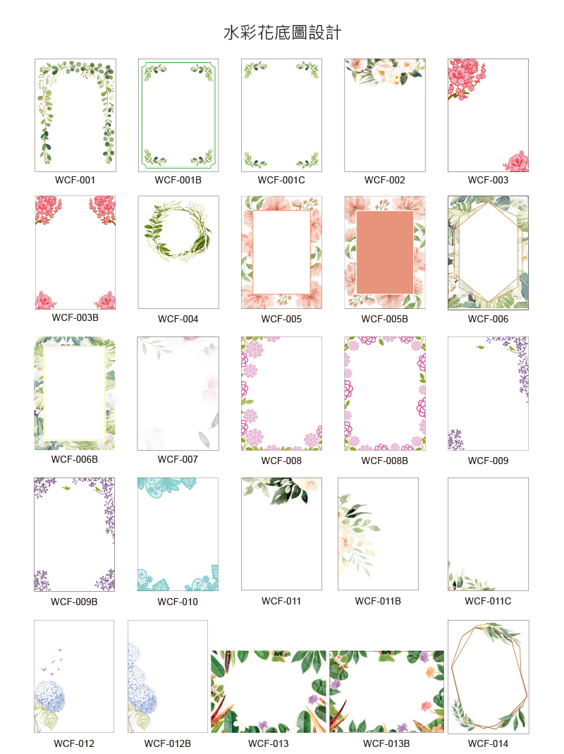 提供一系列婚慶水彩花底圖設計供您選擇來優化您的請柬設計。