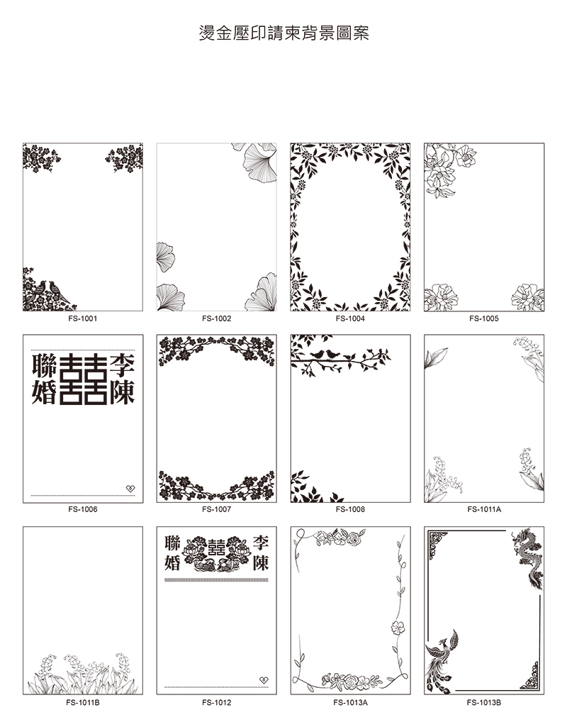 提供一系列婚慶燙金壓印請柬背景圖案供您選擇來優化您的請柬設計。