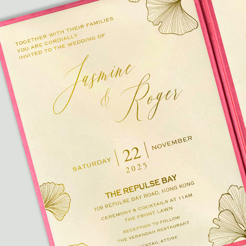 大部份請柬的內文、用紙、用色和字款可按照您的喜愛來改動,但須注意其中有部份選項須另加收費。