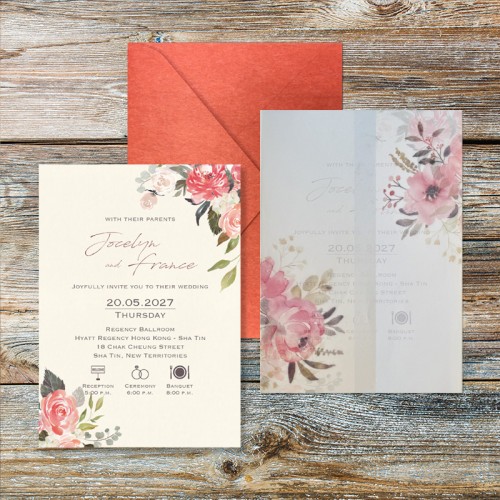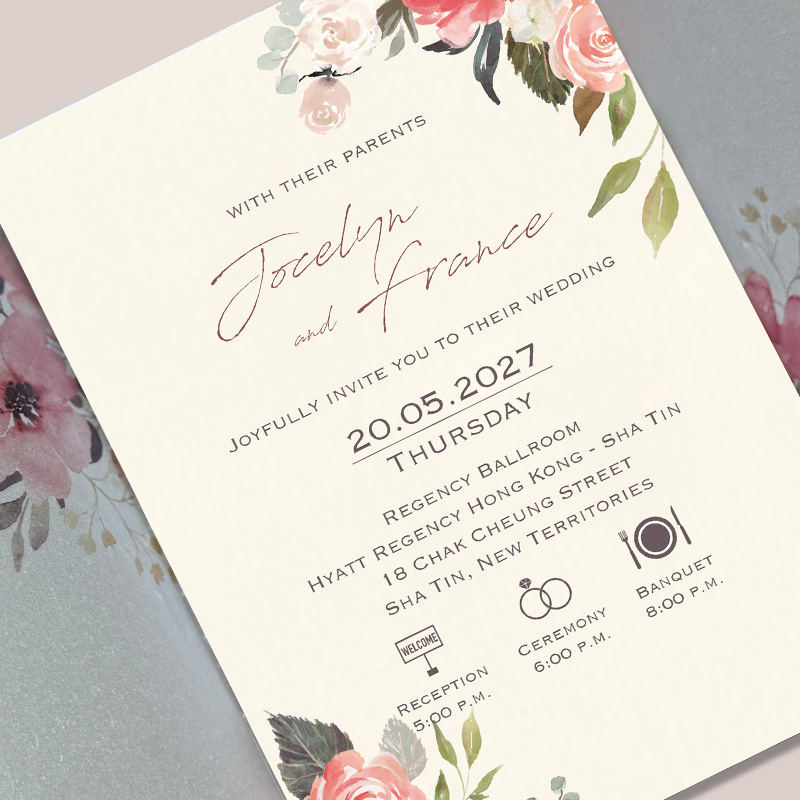 大部份請柬的內文、用紙、用色和字款可按照您的喜愛來改動,但須注意其中有部份選項須另加收費。