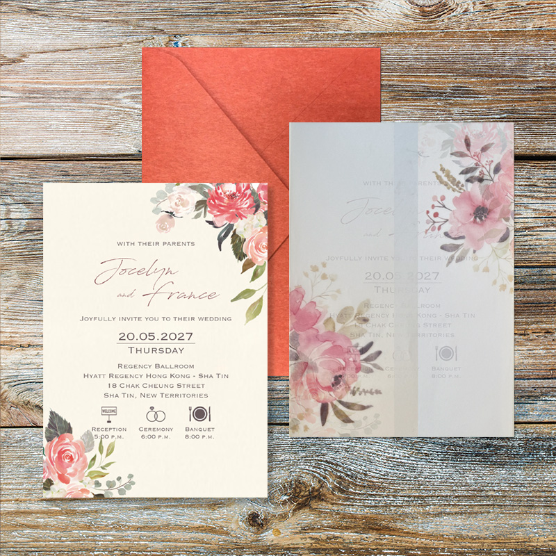 生產週期為 14 至 21 個工作天,但如在旺季或您訂購的請柬較為複雜,交貨期可能會較長。