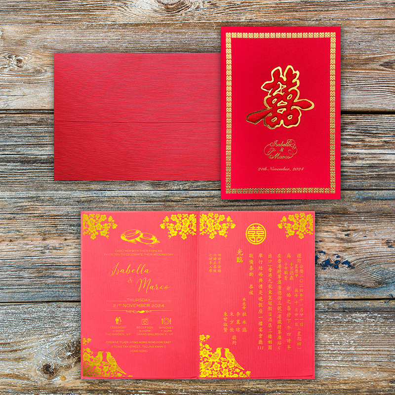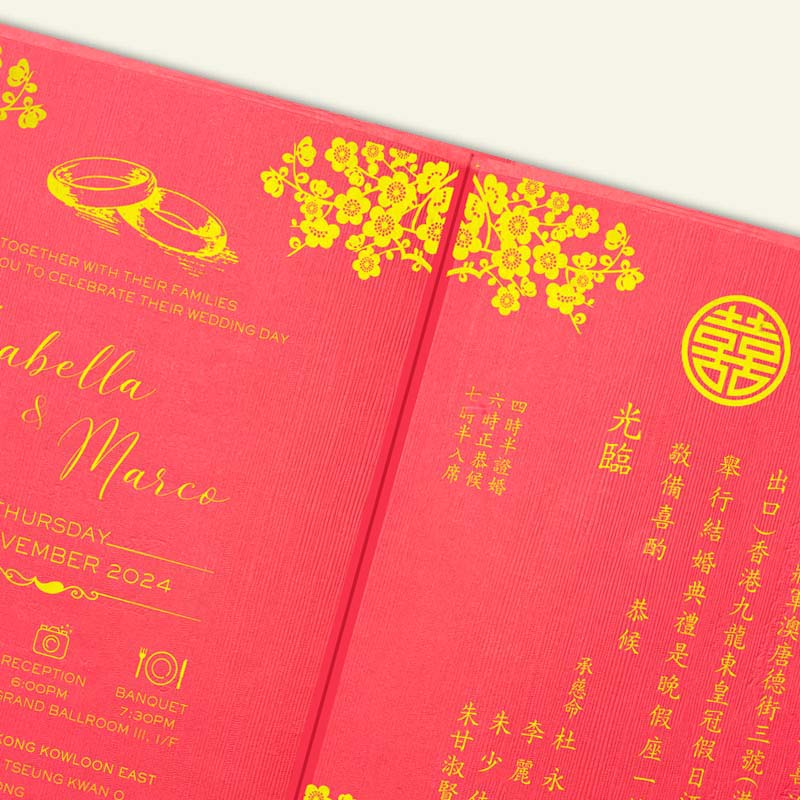 大部份請柬的內文、用紙、用色和字款可按照您的喜愛來改動,但須注意其中有部份選項須另加收費。