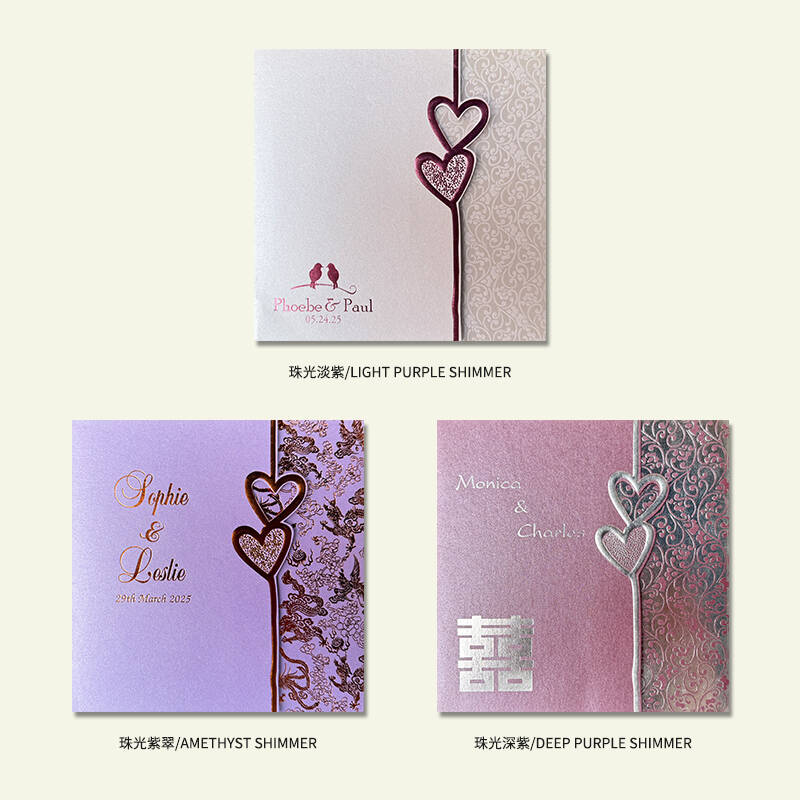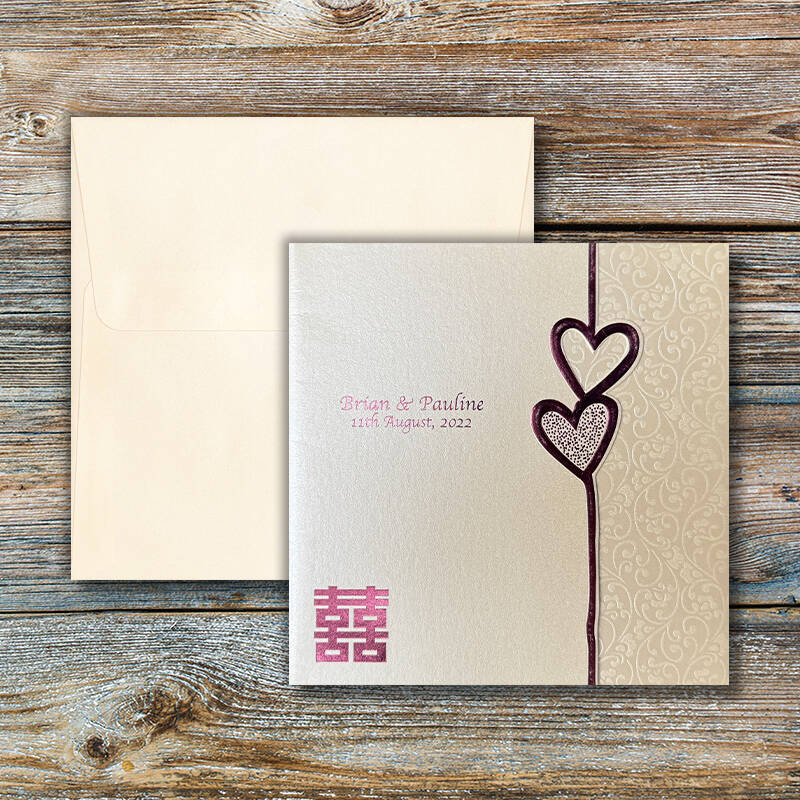 大部份請柬的內文、用紙、用色和字款可按照您的喜愛來改動,但須注意其中有部份選項須另加收費。