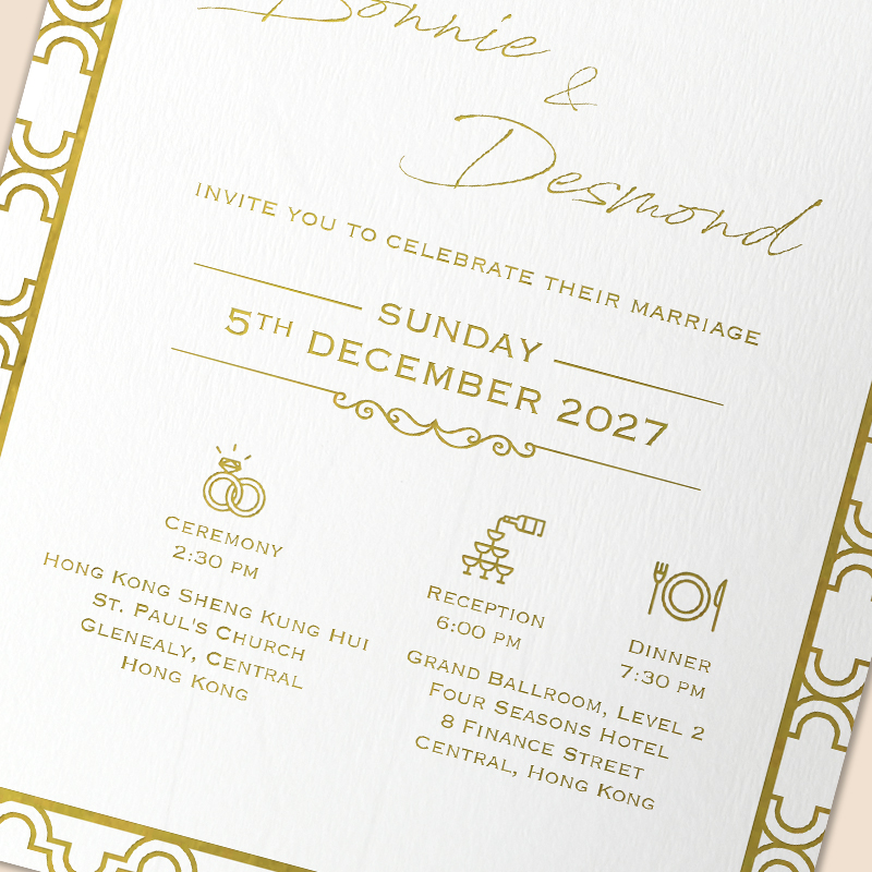 大部份請柬的內文、用紙、用色和字款可按照您的喜愛來改動,但須注意其中有部份選項須另加收費。