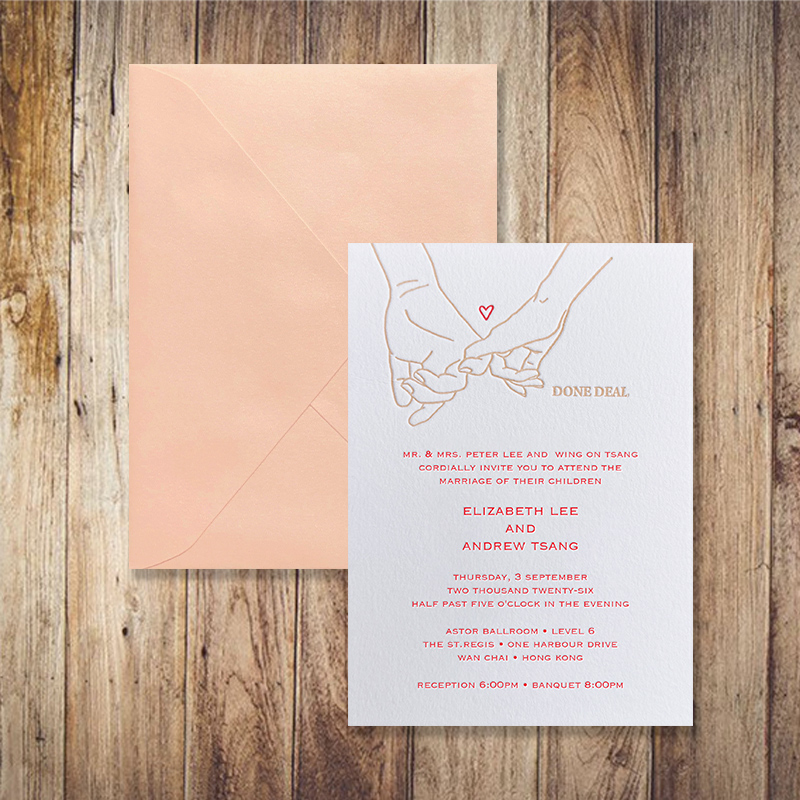 大部份請柬的內文、用紙、用色和字款可按照您的喜愛來改動,但須注意其中有部份選項須另加收費。