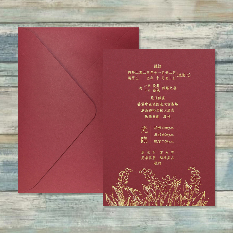 請 柬 呎 吋:178 mm 高 X 127 mm 闊 ( 7" 高 X 5" 闊 )